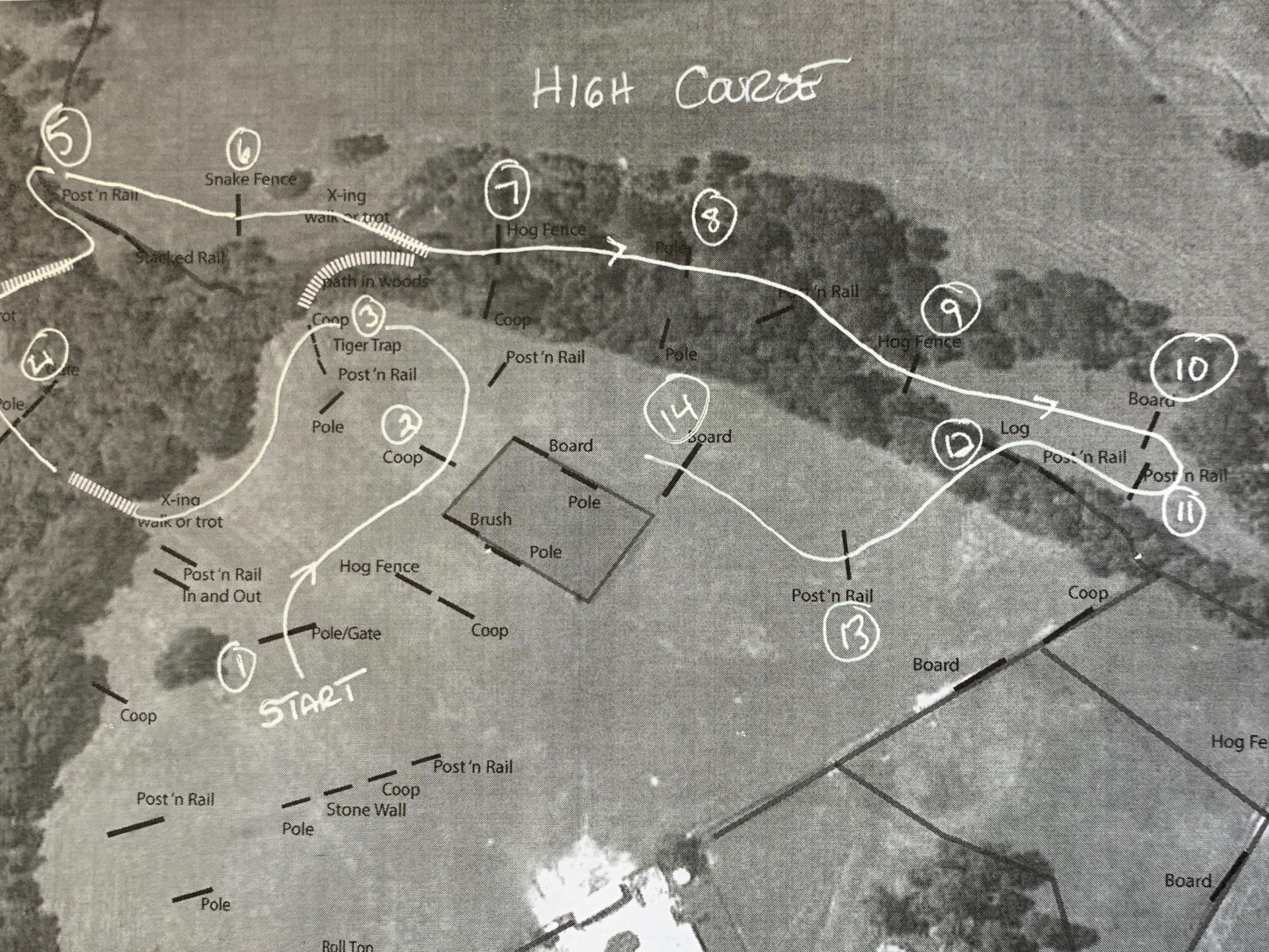 4. The Twill Do Stakes -Course of 10- 12 fences, 3’-3’9’’ TBA that day. 500.00 cash prize and New Perpetual Trophy donated by Lucy Goelet - Hunter Trials High Course Map