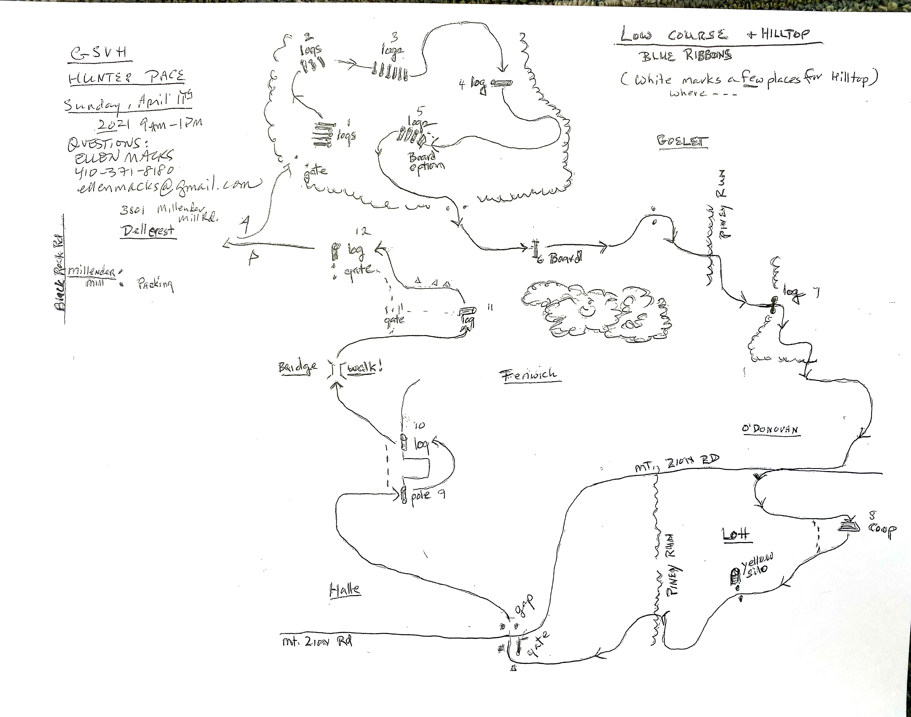Course maps will be available Online here, in the GSVH club tack room, and the Maryland Saddlery on Wednesday, April 7h. Entry fee $25.00 per horse.